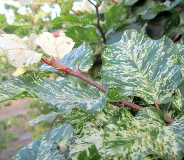 Саженцы Бука лесного европейского Марквард (Fagus sylvatica) – декоративное лиственное дерево, привлекательное при создании кустарно-древесных композиций за счет необычной расцветки листвы. Вырастает до 3 м в высоту. Имеет эллиптическую форму листьев с пестрой неоднородной расцветкой. Весной листья бело-зеленые, летом – желто-зеленые, сравнительно крупные. Подходит для высаживания в парках и садах. Для посадки предпочтительно выбирать хорошо освещенные участки или слабую полутень. Предварительно почву рыхлят и дренируют. Многолетник хорошо переносит морозы и подходит для выращивания в Московской области, большей части России и горных районов Скандинавии.