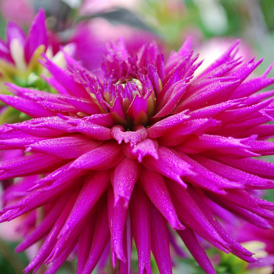 Саженцы и рассада Георгины бахромчатой Страйпт Амбишн (Dahlia cultorum) станут отличным выбором как для украшения цветника, так и для выращивания под срезку. Крупные, до 12 см в диаметре цветки, отличаются насыщенным сиреневым, иногда розоватым цветом. По основному фону идёт едва заметный белый штрих. Особую экзотичность придают цветам длинные узкие лепестки, рассеченные на концах.