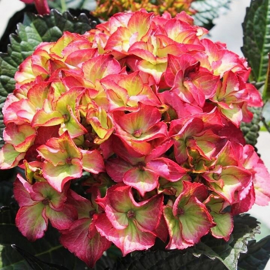 Гортензия крупнолистовая Dark Angel - это великолепное растение с красивыми крупными цветками, окрашенными в яркие оттенки красного и фиолетового с зеленой серединкой. Ее латинское название hydrangea macrophylla говорит о крупных листьях, которые весной радуют глаз зеленым оттенком. Этот сорт гортензии достигает высоты до 150 см и диаметра до 70-80 см, что делает его прекрасным украшением для газонов и групповых посадок.