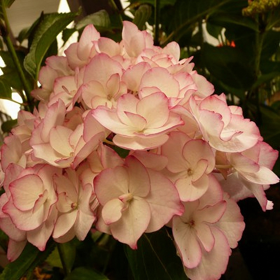 Гортензия крупнолистовая сабрина - это великолепное растение, которое поразит вас своей красотой и изяществом. Ее ствол прочный, а размеры достигают высоты до 100 см с диаметром цветка 20-25 см. Листья гортензии имеют ярко-зеленую окраску весной и осенью, что создает неповторимый контраст с кремовыми цветами с розовой каймой. Это растение предпочитает солнечные и полутенистые места для посадки в дренированных богатых почвах.