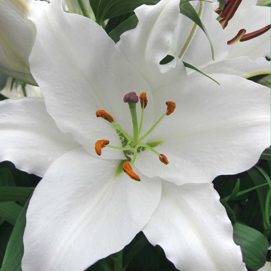 Луковицы лилии восточной горшечной Тру Эмоушн (Lilium True Emotion) — это яркая экзотика для украшения клумб и придомовых участков. Кусты этого сорта пышные, с прочными стеблями, особенно ценятся за устойчивость к заморозкам. Также они редко подвергаются воздействию инфекционных заболеваний и вредителей. Главное украшение лилии — это ее цветы, которые в конце лета начинают распускаться в большом количестве. Лепестки этого сорта классического белого цвета, с контрастными темными пыльниками. Они достигают 16 см в диаметре и появляются на цветоносах целыми букетами. Благодаря обильному цветению лилия Тру Эмоушн подходит не только для групповых, но и для одиночных посадок.