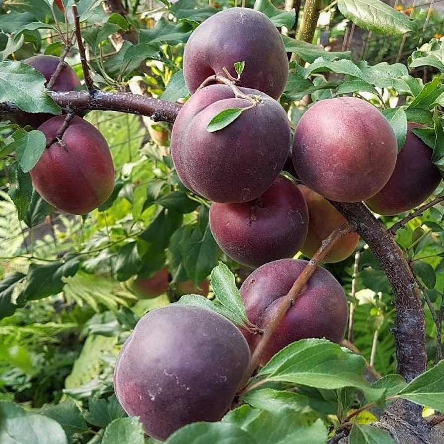 Саженцы шарафуги (гибрида) Вельвет Санрайз (Velvet Sunrise) вырастут в среднерослые плодовые деревья около 3 метров в высоту. Это растение называют сливой, что не совсем верно. Шарафуга – гибрид сливы, абрикоса и персика. Эти фрукты считают южными. Однако, благодаря селекционерам, получилось морозостойкое дерево с высоким иммунитетом к заболеваниям и вредителям. Если в соседстве посадить дерево-опылитель, в возрасте 4 лет в конце июля саженец начнёт плодоносить. При простом уходе дерево ежегодно будет приносить урожай из тёмно-фиолетовых фруктов, достигающих в диаметре 6-8 сантиметров.
