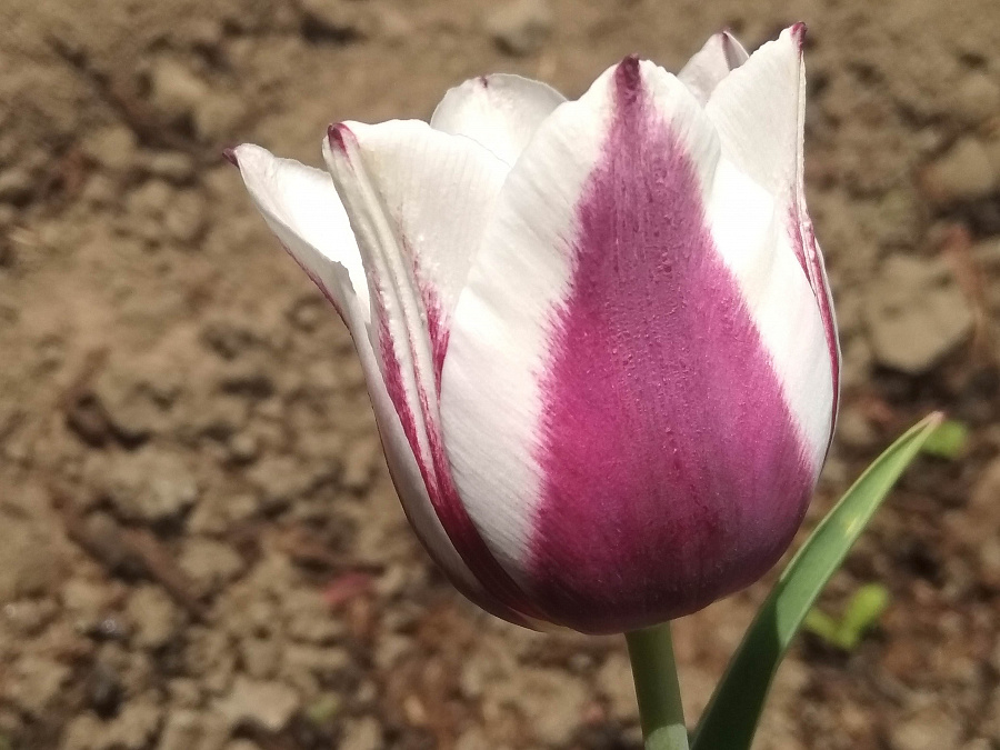 Тюльпан Триумф Шпицберген - это великолепное растение с бордовыми цветками, украшенными широким белым краем. Его стебель достигает высоты до 45 см, что делает его идеальным выбором для групповых и одиночных посадок. Листья тюльпана имеют травянистую форму, что придает растению особый шарм.