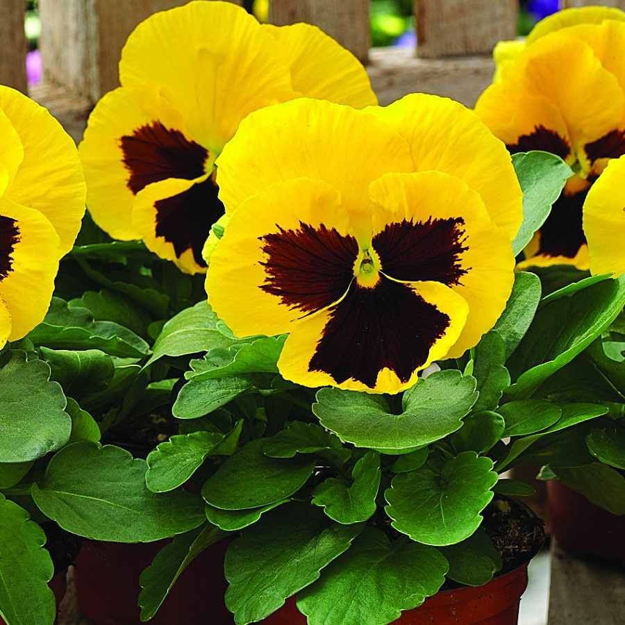 Виола ампельная кул вэйв файр - это настоящий огненный шторм в мире садовых растений! Ее желто-черные цветы напоминают пламя, разгорающееся на фоне зеленых листьев. Этот сорт поражает своей красотой и изысканностью, привлекая внимание всех окружающих.